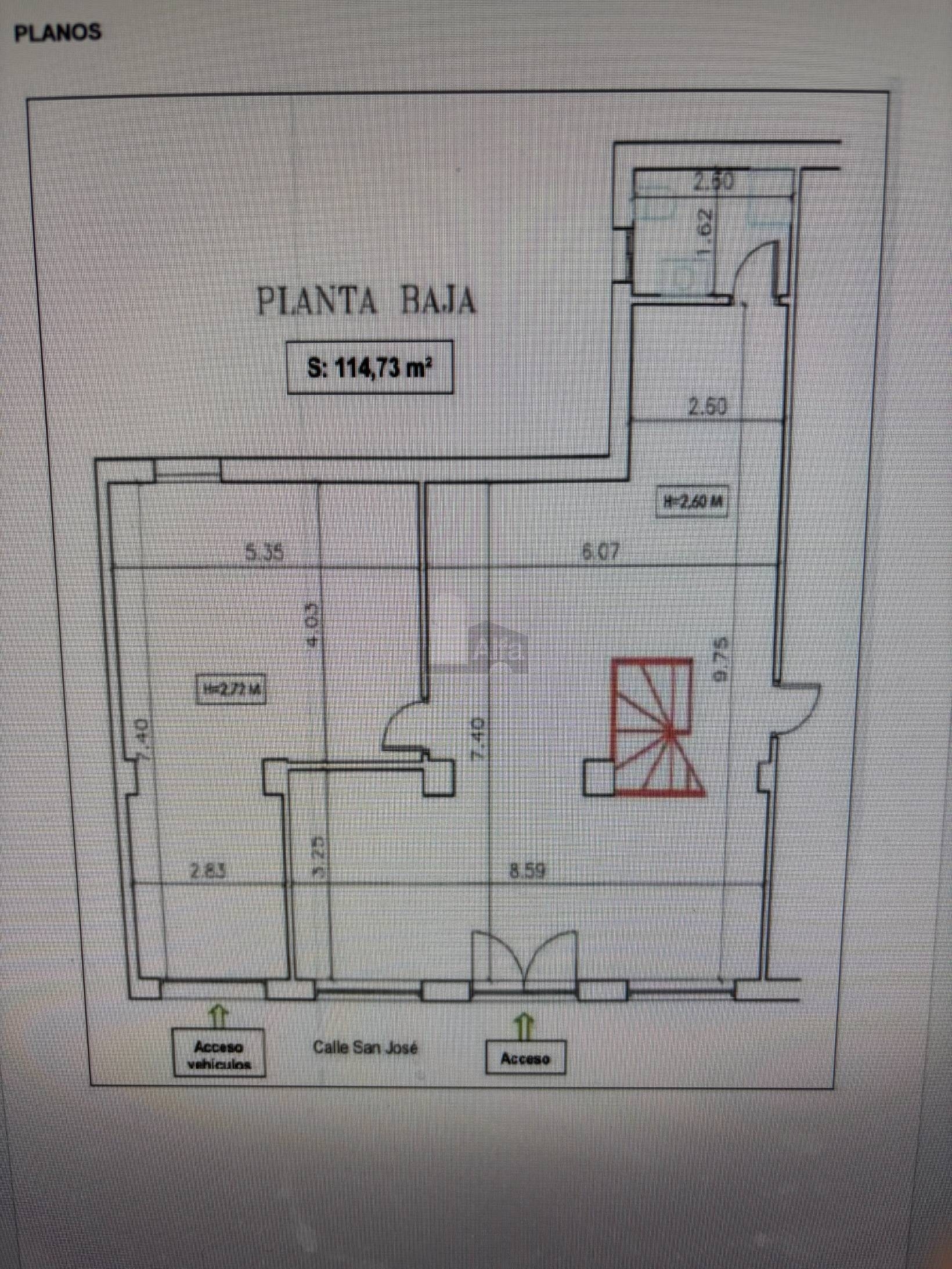 Descubre este atractivo local comercial ubicado en la calle San José, ideal para emprendedores y negocios en crecimiento. Con una superficie total construida de 244,29 m², este inmueble se distribuye en dos plantas interconectadas por una elegante escalera interior de madera. La planta baja cuenta con un solado de gres que realza su luminosidad y un aseo alicatado, adaptado para personas con discapacidad, garantizando la accesibilidad para todos. La fachada, de ladrillo enfoscado y pintado, presenta una puerta de entrada de aluminio de dos hojas acristalada que invita a los clientes a entrar. Además, cuenta con tres escaparates que ofrecen una excelente visibilidad para exhibir productos o servicios. En la planta superior, el solado de lámina de PVC proporciona un ambiente moderno y funcional, ideal para oficinas o salas de trabajo. Este local también incluye un garaje privado con entrada para coches en el lado izquierdo, lo que añade un valor significativo a la propiedad. Con una altura libre total de 2,60 m en la planta baja y 2,00 m en la superior, el espacio es versátil y se adapta a diferentes tipos de servicios profesionales. ¡No pierdas la oportunidad de establecer tu negocio en una ubicación estratégica y de alto tráfico. O incluso hacerte una gran vivienda, en planta baja, con garaje en el centro (ancho puerta garaje 1,90m).